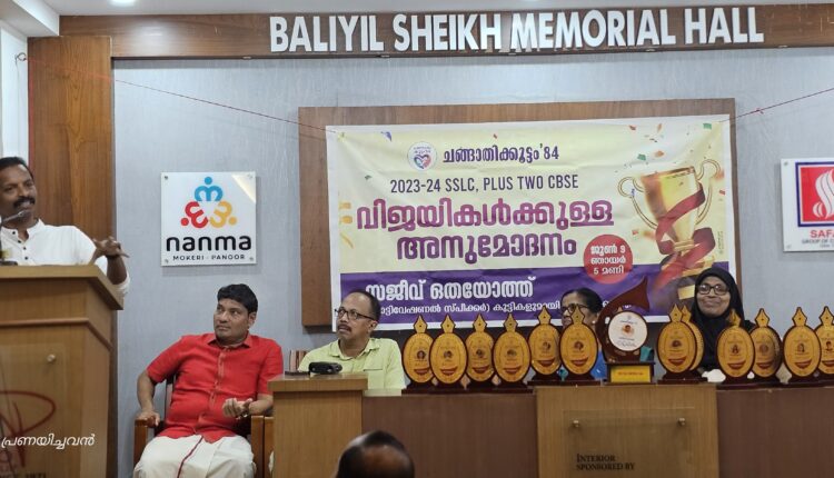 പാനൂർ: പാനൂർ ഹൈസ്കൂളിലെ 84 ബാച്ചിലെ പൂർവ വിദ്യാർത്ഥി കൂട്ടായ്മയായ ചങ്ങാതിക്കൂട്ടം 84,ഈ വർഷം എസ് എസ് എൽ സി പ്ലസ് ടു വിജയം നേടിയ മുഴുവൻ കുട്ടികളേയും അനുമോദിച്ചു.ലൈഫ് സ്കിൽ ട്രെയിനർ സജീവ് ഒതയോത്ത് ഉദ്ഘാടനം ചെയ്തു. മുഴുവൻ എ പ്ലസ് നേടിയതുകൊണ്ട് മാത്രം ജീവിത വിജയം കൈവരിക്കാൻ കഴിഞ്ഞെന്ന് വരില്ല മറിച്ച് നേടിയ വിജത്തിൽ നിന്നും ലഭിച്ച ഊർജം ഉൾക്കൊണ്ട് കൊണ്ട് മുന്നേറാൻ സാധിക്കുമ്പോഴാണ് വിജയം പൂർണമാകുന്നതെന്ന് അദ്ദേഹം കുട്ടികളെ ഓർമപ്പെടുത്തി. ചങ്ങാതിക്കൂട്ടത്തിലെ ചങ്ങാതിമാർ വിജയികൾക്കുള്ള