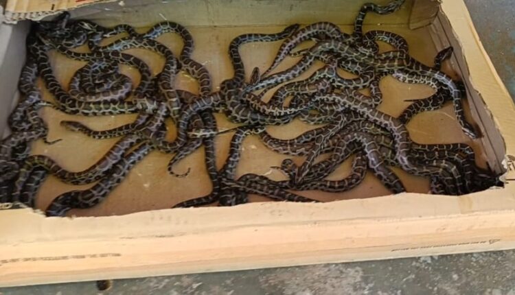 മനേക്കരയിൽ ഏപ്രിൽ മാസം കണ്ടെത്തിയ 35 പെരുമ്പാമ്പിൻ മുട്ടകളും വിരിഞ്ഞു ; പാമ്പുകളെ കണ്ണവം കാട്ടിൽ വിടും