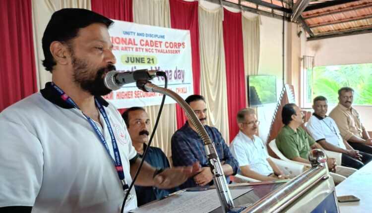 ചൊക്ലി : അന്താരാഷ്ട്ര യോഗാ ദിനത്തോടനുബന്ധിച്ച് വൺ കേരള ആർട്ടിലറി ബാറ്ററി എൻ സി തലശ്ശേരിയുടെ കീഴിലുള്ള ചൊക്ലി രാമവിലാസം ഹയർ സെക്കൻഡറി സ്കൂളിലെ എൻ സി സി കേഡറ്റുകൾ യോഗ പരിശീലനം നടത്തി .പരിപാടിയുടെ ഔപചാരിക ഉത്ഘാടനവും യോഗ പരിശീലനവും പ്രശസ്ത യോഗ പരിശീലകനും സിനിമ പിന്നണി ഗായകനുമായ മുസ്തഫ മാസ്റ്റർ നിർവഹിച്ചു .സ്കൂൾ പ്രിൻസിപ്പാൾ ശ്രീ പ്രശാന്ത് .ടി അധ്യക്ഷനായ ചടങ്ങിൽ സ്കൂൾ ഹെഡ് മാസ്റ്റർ ശ്രീ പ്രദീപ് കിനാത്തി സ്വാഗതവും എൻ സി സി ഓഫീസർ ശ്രീ രവിദ് .ടി .പി നന്ദി പ്രകടനവും നടത്തി .സ്കൂൾ ഹെഡ് മിസ്ട്രസ് ശ്രീമതി സ്മിത .എൻ ,ഹയർ സെക്കന്ററി സ്റ്റാഫ് സെക്രട്ടറി ശ്രീ രചീഷ് ,സ്കൗട്ട് മാസ്റ്റർ ശ്രീ അനിൽ കുമാർ .കെ തുടങ്ങിയവർ ആശംസകൾ അർപ്പിച്ചു സംസാരിച്ചു .യോഗ പരിശീലനത്തിൽ 50 കേഡറ്റുകൾ പങ്കെടുത്തു .യോഗയെ കുറിച്ച് കൂടുതൽ കാര്യങ്ങൾ മനസിലാക്കാനും പ്രായോഗിക ജീവിതത്തിൽ വളരെ ഗുണപ്രദമായ ഒരു ക്ലാസ്സ് ആണ് ലഭിച്ചതെന്ന് മുഴുവൻ കേഡറ്റുകളും അഭിപ്രായപെട്ടു .