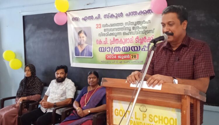 മാഹി: മുപ്പത്തിമൂന്നു വർഷത്തെ സ്തുത്യർഹ സേവനത്തിനു ശേഷം പന്തക്കൽ ഗവ: എൽ.പി.സ്കൂൾ ഹെഡ്മിസ്ട്രസ്സ് ആയി വിരമിച്ച കെ.പി. പ്രീതകുമാരിക്ക് സ്റ്റാഫ് കൗൺസിലും അദ്ധ്യാപക രക്ഷാകർതൃ സമിതിയും സംയുക്തമായി സംഘടിപ്പിച്ച യാത്രയയപ്പു സമ്മേളനം ജനപങ്കാളിത്തം കൊണ്ട് പന്തക്കൽ ദേശത്തിൻ്റെ ആദരവായി മാറി.