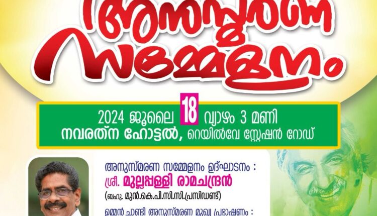 തലശ്ശേരി :ജവഹർ കൾച്ചറൽ ഫോറത്തിൻ്റെ ആഭിമുഖ്യത്തിൽ , മുൻമുഖ്യമന്ത്രിയും ഇന്ത്യൻ നേഷണൽ കോൺഗ്രസ്സ് നേതാവുമായിരുന്ന ഉമ്മൻ ചാണ്ടി അനുസ്മരണം 18 ന് വ്യാഴാഴ്ച വൈകിട്ട് 3 മണിക്ക് തലശ്ശേരിയിൽ നടത്തും. തലശ്ശേരി റെയിൽവേ സ്റ്റേഷൻ റോഡിൽ നവരത്ന ഹോട്ടലിലാണ് അനുസ്മരണ സമ്മേളനം ചേരുന്നത്. മുൻ കെ.പി.സി.സി. പ്രസിഡണ്ട് മുല്ലപ്പള്ളി രാമചന്ദ്രൻ സമ്മേളനം ഉദ്ഘാടനം ചെയ്യും. കെ പി സി സി ജനറൽ സെക്രട്ടറി സോണി സെബാസ്റ്റ്യൻ മുഖ്യഭാഷണം നടത്തും. ഉമ്മൻചാണ്ടി അനുസ്മരണ പരിപാടിയുടെ ഭാഗമായി അഗതിമന്ദിരത്തിൽ അന്നദാനം , പാവപ്പെട്ട കുടുംബങ്ങൾക്ക് ഭക്ഷ്യക്കിറ്റ് വിതരണം , വസ്തവിതരണം , വിവിധരംഗങ്ങളിലെ പ്രതിഭകൾക്ക് ഉമ്മൻ ചാണ്ടിയുടെ പേരിൽ ശിൽപ്പവും പൊന്നാടയും നൽകി ആദരിക്കൽ തുടങ്ങിയ വിവിധ പരിപാടികൾ നടക്കും.