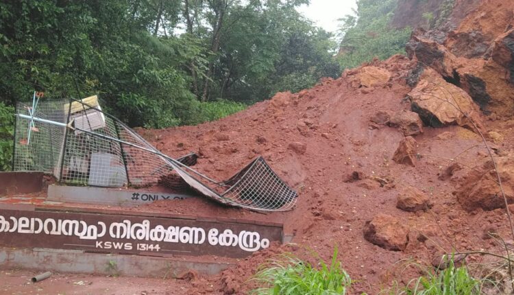 പാനൂർ :ശക്തമായ മഴയിൽ കരിയാട് പുറക്കാട്ട് കുന്ന് ഇടിഞ്ഞ് വീണ് സ്കൂൾ കാലാവസ്ഥാ നിരീക്ഷണ കേന്ദ്രം തകർന്നു.കരിയാട് നമ്പ്യാർസ് ഹയർ സെക്കന്റെറി സ്കൂളിന്റെ കാലാവസ്ഥ നിരീക്ഷണ കേന്ദ്രം പൂർണ്ണമായും തകർന്നു. സ്കൂൾ അവധിയായതു കാരണം വലിയ ദുരന്തമാണ് ഒഴിവായത്. വിദ്യാർത്ഥികൾ കളിക്കുന്ന സ്ഥലത്താണ് കുന്ന് ഇടിഞ്ഞു വീണത്. ഈ കുന്നിൽ നിന്ന് മണ്ണെടുത്ത് മാറ്റാൻ വേണ്ടി നവകേരള സദസ്സിൽ സ്കൂൾ അധികാരികൾ നിവേദനം നൽകിയതിന്റെ അടിസ്ഥാനത്തിൽ ജിയോളജിക്കൽ വകുപ്പ് സ്ഥലം സന്ദർശിച്ച് കലക്ടർക്ക് റിപ്പോർട്ട് നൽകാനിരിക്കെയാണ് ഇപ്പോൾ അപകടം നടന്നത്. കെ.പി.മോഹനൻ എം.എൽ.എ., വില്ലേജ് അധികാരികൾ, പി.ടി.എ.പ്രസിഡണ്ട് , വാർഡ് കൗൺസിലർ ,രാഷ്ട്രീയ പാർട്ടി പ്രതിനിധികൾ തുടങ്ങിയവർ സ്ഥലം സന്ദർശിച്ചു.