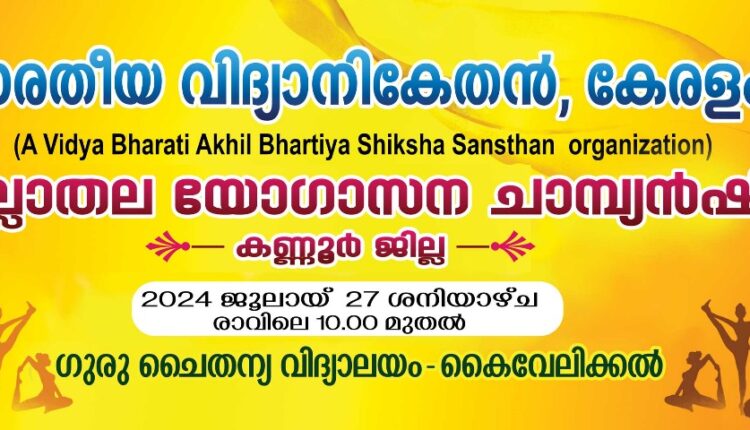 പാനൂർ: ഭാരതീയ വിദ്യാനികേതൻ 2024-25 അദ്ധ്യയന വർഷത്തിലെ ജില്ലാതല യോഗാസന ചാമ്പ്യൻഷിപ്പ് മത്സരം 27ന് ശനിയാഴ്ച രാവിലെ 10 മണി മുതൽ കൈവേലിക്കൽ ഗുരു ചൈതന്യ വിദ്യാലയത്തിൽ വച്ച് നടക്കുന്നതാണ്. ജില്ലയിലെ വിവിധ വിദ്യാലയങ്ങളിൽ നിന്നായി 250 കുട്ടികൾ മത്സരത്തിൽ പങ്കെടുക്കും.