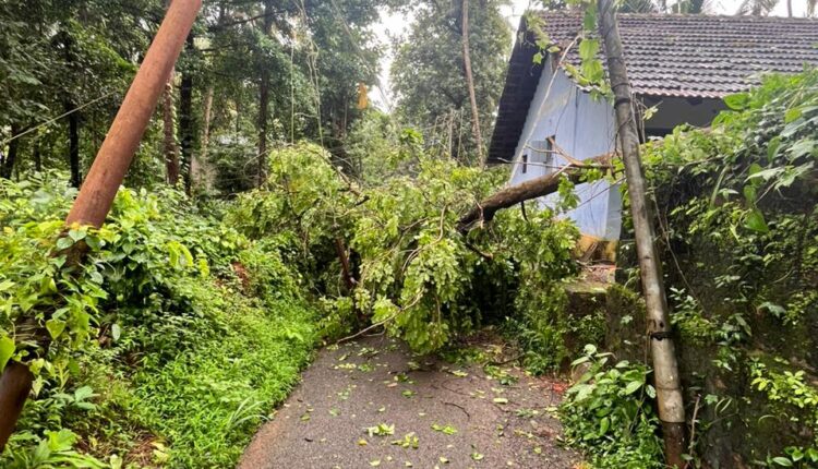 മാഹി : ചാലക്കര മാഹി മഹാത്മാ ഗാന്ധി ഗവ. ആർട്സ് കോളേജിനു സമീപം സീലാൻ്റ് കോട്ടേഴ്സിന് സമീപത്ത് ചുഴലിക്കാറ്റിൽ മരം റോഡിലേക്ക് പിഴുതു വീണു. മരം വീണതിനെ തുടർന്ന് വൈദ്യുത പോസ്റ്റ് ഒടിഞ്ഞു വീണു. അത് വഴി പോയ സ്ത്രീകൾ ഭാഗ്യം കൊണ്ട് രക്ഷപ്പെട്ടു. കോട്ടേഴ്സിന് ചെറിയ കേടുപാടുകൾ സംഭവിച്ചിട്ടുണ്ട്