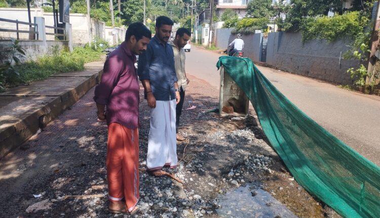 കാവിൻമൂല: അഞ്ചരക്കണ്ടി ഗ്രാമ പഞ്ചായത്ത് ഓഫീസിന് സമീപം താഴെ കാവിൻമൂലയിലെ റോഡ് പൊട്ടി പൊളിഞ്ഞ് വൻ ഗർത്തം രൂപം കൊണ്ടിട്ട് നാളുകളായി. തുടർച്ചയായി അധികാരികളുടെ ശ്രദ്ധയിൽ പെടുത്തിയിട്ടും ക്രീയാത്മകമായി ഇടപെടാത്തത് മൂലം അപകടങ്ങൾ ദിനം പ്രതി വർദ്ധിക്കുന്നതിൽ സഹികെട്ട് യൂത്ത് കോൺഗ്രസ്സ് പ്രവർത്തകർ പ്രതിഷേധം രേഖപ്പെടുത്തുകയും പൗരാവകാശ നിഷേധത്തിനെതിരെ അടുത്ത ദിവസങ്ങളിൽ യൂത്ത് കോൺഗ്രസ്സ് മണ്ഡലം കമ്മിറ്റിയുടെ നേതൃത്വത്തിൽ കൂടുതൽ ശക്തമായ ഉപരോധ പരിപാടികൾ സംഘടിപ്പിക്കുവാൻ തീരുമാനിച്ചിരിക്കുകയാണ്. മണ്ഡലം പ്രസിണ്ടന്റ് ആർ.പി മൃദുൽ, നാവത്ത് ബിജു, ഷിജിൽ യു.പി, അഭിലാഷ് കാവിൻമൂല, കെ.വി മിഥുൻ മോഹൻ എന്നിവർ പ്രതിഷേധ സമരത്തിൽ പങ്കെടുത്തു.