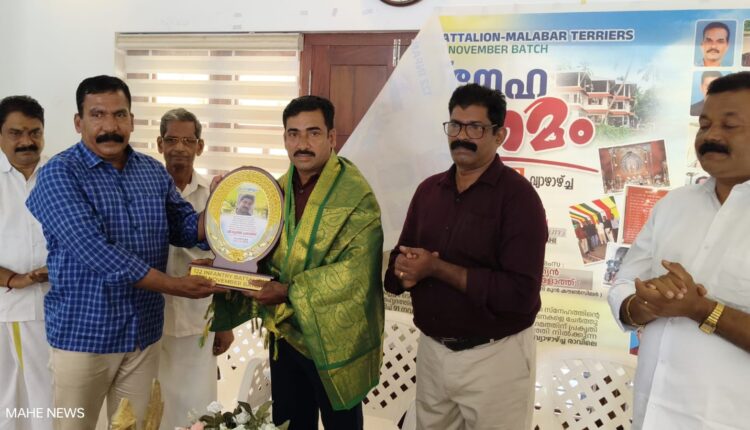മാഹി: 1991 നവംബർ ബാച്ചിലെ വിമുക്തഭടന്മാരുടെ സ്നേഹസംഗമം വിവിധ പരിപാടികളോടെ നടത്തി. 1997 ൽ ജമ്മു കാശ്മീരിലെ ബാരമുള്ളയിൽ വെച്ച് നടന്ന തീവ്രവാദി ആക്രമണത്തിൽ ഗുരുതര പരിക്കേറ്റ വിമുക്തഭടനും മാഹി സബ് ഇൻസ്പെക്ടറുമായ സുനിൽ പ്രശാന്തിനെ സംഗമത്തിൽ വെച്ച് ശിലാഫലകം നല്കി ആദരിച്ചു. 1971 ൽ ഇന്ത്യ – പാക് യുദ്ധത്തിൽ പങ്കെടുത്ത വിമുക്തഭടൻ പള്ളൂരിലെ തച്ചരക്കൽ മാധവൻ നമ്പ്യാർ നിലവിളക്ക് കൊളുത്തി സ്നേഹ സംഗമം ഉദ്ഘാടനം ചെയ്തു. അർബുദം ബാധിച്ച് മരണപ്പെട്ട വിമുക്ത ഭടനായ ഹവിൽദാർ സുരേന്ദ്രന് സ്മരണാഞ്ജലി അർപ്പിച്ചു. ഇ.വി.പ്രഭാകരൻ, ടി.ഷാജി എന്നിവരെ ആദരിച്ചു. ഓണററി ക്യാപ്റ്റൻ ഇ.വി.പ്രഭാകരൻ ചടങ്ങിൽ അധ്യക്ഷത വഹിച്ചു. സത്യൻ കേളോത്ത്, പി.എസ്.കുഞ്ഞാസ്, ജി.ഷിബു, ടി.വി. കവിരാജ് സംസാരിച്ചു.