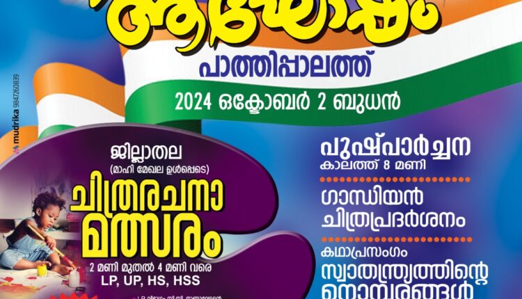 പാനൂർ :പാത്തിപ്പാലം മഹാത്മ ഗാന്ധി വായനശാല & ഗ്രന്ഥാലയത്തിൻ്റെയും മൊകേരി സ്നേഹസ്പർശം ഉമ്മൻ ചാണ്ടി ചാരിറ്റബിൾ ട്രസ്റ്റിൻ്റേയും സംയുക്താഭിമുഖ്യത്തിൽ ഗാന്ധിജയന്തിനാളിൽ പാത്തിപ്പാലത്ത് ഗാന്ധിജയന്തി ദിനാഘോഷം സംഘടിപ്പിക്കുന്നു.