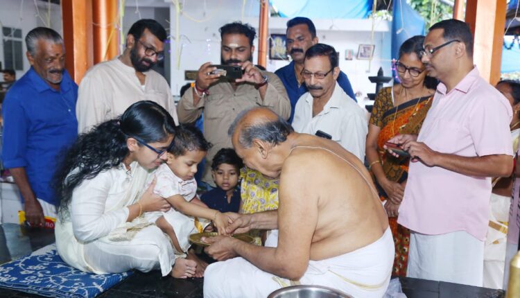 ന്യൂമാഹി: പെരിങ്ങാടി ശ്രീ മാങ്ങോട്ടും കാവ് ഭഗവതി ക്ഷേത്രത്തിൽ കുരുന്നുകൾക്ക് ഹരിശ്രീ കുറിച്ചു. ക്ഷേത്ര മേൽശാന്തി നാരായണൻ നമ്പൂതിരി കുട്ടികളുടെ നാവിന് തുമ്പിൽ സ്വർണ്ണ മോതിരം കൊണ്ടും കൈവിരൽ തുമ്പ് പിടിച്ച് അരിയില് ഹരിശ്രീ കുറിച്ചും തുടർന്ന് ഗ്രന്ഥം വെച്ച പുസ്തകങ്ങൾ വിതരണം ചെയ്തു. മഹാനവമി നാളിൽ ക്ഷേത്രത്തിലെ ഭീപാരാധനയ്ക്ക് ശേഷം വാഹന പൂജയും നടന്നു. നവരാത്രി ആഘോഷത്തിന്റെ ഭാഗമായി ക്ഷേത്രത്തിൽ ലളിത സഹസ്രനാമ പാരായണവും സരസ്വതി പൂജ, ഭജന, ആദ്ധ്യാത്മിക പ്രഭാഷണം, സംഗീതാർച്ചന, അമൃത സംഗീതം, ഭക്തിഗാനസുധ എന്നിവയും നടന്നു.ക്ഷേത്ര ഭാരവാഹികൾ നേതൃത്വം നൽകി.മാങ്ങോട്ടിലമ്മയുടെ അപദാനങ്ങള് വാഴ്ത്തികൊണ്ട് ശ്രീനിവാസ് ചാത്തോത്ത് രചിച്ച വരികള്ക്ക് സുരേഷ് ബാബു മാഹി സംഗീതം നല്കി, അനൂപ് മടപ്പള്ളി മനോഹരമായി ആലപിച്ച ”മാച്ചോല” എന്ന ഭക്തിഗാനം മാങ്ങോട്ടും കാവിലെ നവരാത്രി മണ്ഡപത്തില് പ്രകാശനം ചെയ്തു.
