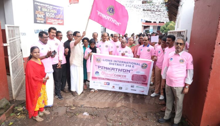 പാനൂർ :ലയൺസ് ഡിസ്ട്രിക്റ്റ് 318E യുടെയും പാനൂർ ലയൺസ് ക്ലബിൻ്റെയും നേതൃത്വത്തിൽ എൻ എസ് എസ് വിദ്യാർത്ഥികൾ സ്റ്റുഡൻ്റ് പോലീസ് കേഡറ്റ് പൊതുജനങ്ങൾ എന്നിവരെ ഉൾപ്പെടുത്തി പാനൂരിൽ പിങ്കത്തോൺ ബ്രസ്റ്റ് കേൻസർ മെഗാ ബോധവൽക്കരണ റാലി സംഘടിപ്പിച്ചു. റാലി കെ.പി മോഹനൻ എം എൽ എ ഫ്ലാഗ് ഓഫ് ചെയ്തു. കെ കൃഷ്ണൻ മാസ്റ്റർ പ്രകാശൻ കിഴക്കയിൽ ജയചന്ദ്രൻ കെ.പി , ശ്രീധരൻ പി.പി , ബിജോയ് എസ്. കെ. മോഹൻദാസ് മാസ്റ്റർ ,രാജൻ നമ്പ്യാർ അഡ്വ . നിഷാന്ത് , ജയേഷ്,’ശോഭന ജയചന്ദ്രൻ ,മോളി വർക്കി’, കെ.പി പ്രമോദ് ,ബിഷ ടീച്ചർ എന്നിവർ നേതൃത്വം നൽകി. തുടർന്ന് പിആർ മെമ്മോറിയൽ ഹയർ സെക്കണ്ടറിസ്ക്കൂളിൽ വെച്ച് ഡോക്ടർമാരുടെ നേതൃ ത്വത്തിൽ സ്തന പരിശോധന ക്യാമ്പ് നടത്തി.