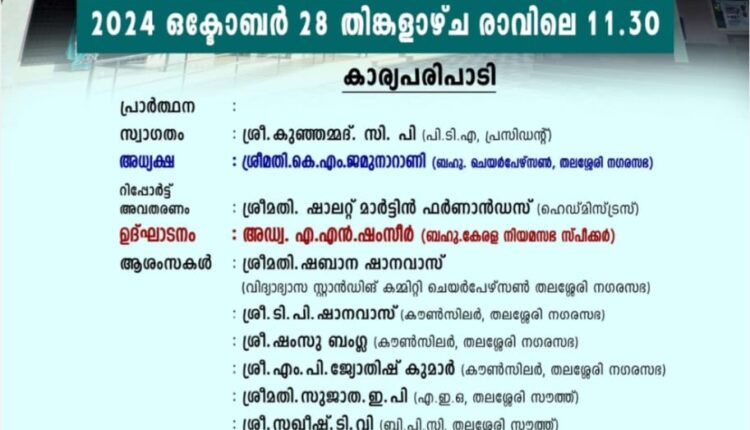 തലശേരി നഗരസഭ ചെയർപേർസൺ കെ.എം. ജമുനാ റാണി അദ്ധ്യക്ഷയാവുന്ന ഉദ്ഘാടനച്ചടങ്ങിൽ സ്കൂൾ ഹെഡ്മിസ്ട്രസ് ഷാലറ്റ് മാർട്ടിൻ ഫർണാണ്ടസ് റിപ്പോർട്ട് അവതരിപ്പിക്കും.