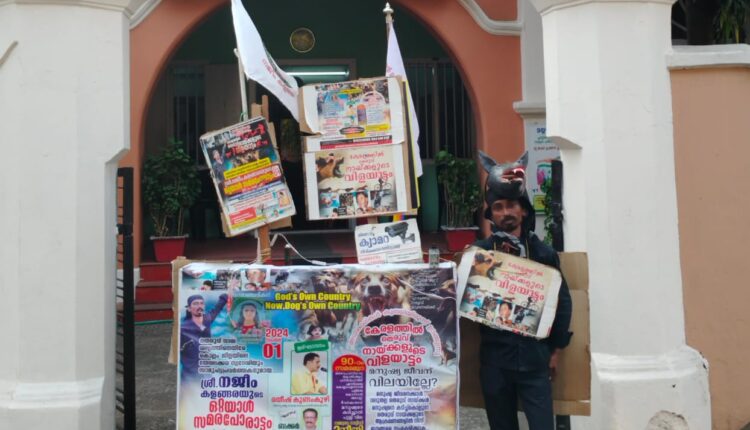 മാഹി : തെരുവുനായ ശല്യത്തിനെതിരെ വീൽചെയർ ഉന്തി ഒറ്റയാൾ പോരാട്ടവുമായി മഞ്ചേശ്വരം മുതൽ തിരുവനന്തപുരം വരെ നടത്തുന്ന ഒറ്റയാൾ സമരം മാഹിയിലെത്തി. കൊല്ലം തേവലക്കര സ്വദേശി നജീബ് കുളങ്ങരയാണ് വ്യത്യസ്തമായ ഈ സമരപരിപാടിയുമായി മാഹിയിൽ എത്തിയത്.യാത്രക്കിടയിൽ എത്തുന്ന പഞ്ചായത്തുകളിലും മുനിസിപ്പാലിറ്റികളിലേയും അധികൃതർക്ക് പരാതി നൽകിയാണ് ഇദ്ദേഹം യാത്ര തുടരുന്നത്. നവംബർ ഒന്നിന്കേരളപ്പിറവി ദിനത്തിൽ മഞ്ചേശ്വരത്തു നിന്നു തുടങ്ങിയ യാത്ര തിരുവനന്തപുരം സെക്രട്ടേറിയറ്റിൽ എത്തി നിവേദനം നൽകുന്നതോടെ അവസാനിപ്പിക്കും.നായ്ക്കളുടെവിളയാട്ടം തടങ്ങുന്നതിനും വന്ധ്യംകരണം ശാസ്ത്രീയമാകണമെന്നും ആവശ്യപ്പെട്ടു നായയുടെ മുഖ മൂടിയണിഞ്ഞ് ഒറ്റയാൾ തെരുവുനാടകവും അവതരിപ്പിച്ചാണ് നജീബ് യാത്ര തുടരുന്നത്. കേരളത്തിന് പുറത്താണെങ്കിലും ഏറെ തെരുവ് നായ ശല്യം അനുഭവിക്കുന്ന പ്രദേശമായതിനാൽ മാഹിയിലും നജീബ് പരാതി നൽകിയിട്ടാണ് യാത്ര തുടരുന്നത്.