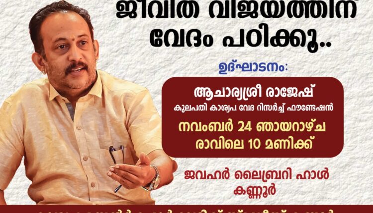 കണ്ണൂർ :ജീവിത വിജയത്തിന് വേദം പഠിക്കൂ എന്ന ആഹ്വാന ത്തോടെ കാശ്യപ സെൻ്റർ ഫോർ വേദിക് സ്റ്റഡീസിൻ്റെ ആഭിമുഖ്യത്തിൽ കണ്ണൂരിൽ വേദപഠന ക്ലാസ്സ് ആരംഭിക്കുന്നു.