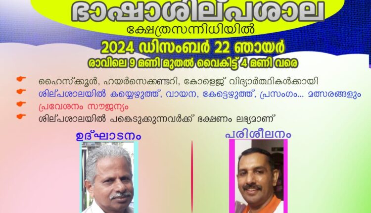 മമ്പറം : മമ്പറം എടപ്പാടി ശ്രീ കളരി ഭഗവതീ ക്ഷേത്ര സന്നിധിയിൽ, ആണ്ടു തിറയുത്സവസംഘാടക സമിതിയുടെ ആഭിമുഖ്യത്തിൽ വിദ്യാർത്ഥികൾക്കായി അമ്മമലയാളം ഭാഷാ ശില്പശാല 22 ന് ഞായറാഴ്ച രാവിലെ 9 മണി മുതൽ വൈകിട്ട് 4 മണി വരെ നടത്തുന്നു. മലയാള ഭാഷാപഠനത്തിൽ തല്പരരായ ഹൈസ്കൂൾ , ഹയർസെക്കൻ്ററി , കോളജ് വിദ്യാർത്ഥികൾക്ക് പങ്കെടുക്കാം. കൂടുതൽ അന്വേഷണങ്ങൾക്കും പേര് രജിസ്റ്റർ ചെയ്യാനും 9495743763, 6282788391 എന്നീ നമ്പറുകളിൽ ബന്ധപ്പെടാവുന്നതാണ് . പ്രവേശനം ആദ്യം പേര് തരുന്ന 25 വിദ്യാർത്ഥികൾക്കായി പരിമിതപ്പെടുത്തിയിരിക്കുന്നു. എസ്. കെ. വിനയൻ മാസ്റ്റർ ഉദ്ഘാടനം ചെയ്യുന്ന ശില്പശാലയിൽ വേണുദാസ് മൊകേരി പരിശീലനം നിർവ്വഹിക്കും.