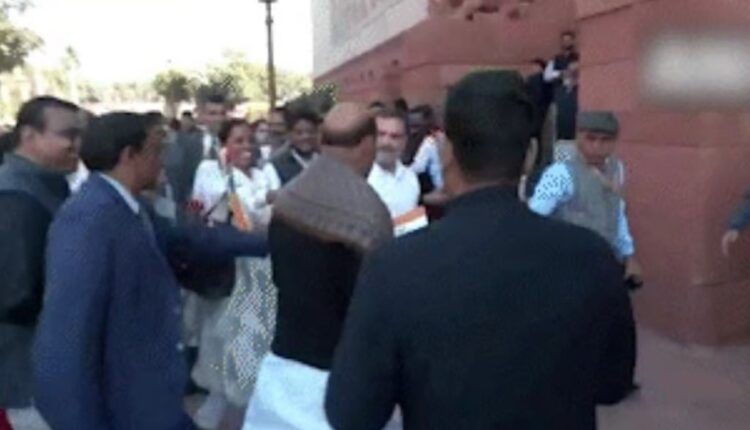ന്യൂഡല്ഹി: പാര്ലമെന്റില് അദാനി വിഷയത്തില് വ്യത്യസ്തമായ പ്രതിഷേധവുമായി കോണ്ഗ്രസ്. ഇന്നലെ പ്രധാനമന്ത്രി നരേന്ദ്രമോദിയുടെയും അദാനിയുടെയും മുഖംമൂടി ധരിച്ചായിരുന്നു പ്രതിഷേധമെങ്കില് ഇന്ന് ബി.ജെ.പി അംഗങ്ങള്ക്ക് ദേശീയ പതാകയും റോസാപ്പൂവും നല്കിയായിരുന്നു കോണ്ഗ്രസ് പ്രതിഷേധം. ഇതിന്റെ ഭാഗമായി ലേക്സഭയിലേക്ക് പ്രവേശിക്കുന്ന മന്ത്രി രാജ്നാഥ് സിങിന് പ്രതിപക്ഷ നേതാവ് രാഹുല് ഗാന്ധി ദേശീയപതാകയും റോസാപ്പൂവും നല്കി.