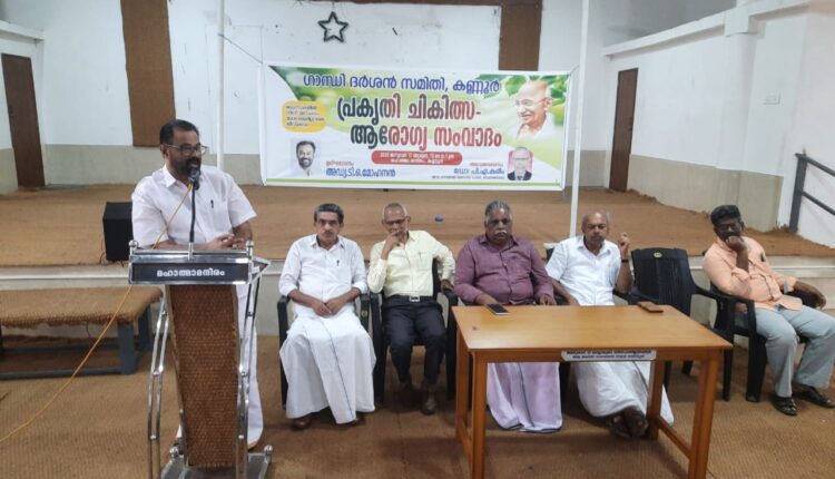 കണ്ണൂർ : ഗാന്ധിദർശൻ സമിതി കണ്ണൂർ ജില്ല കമ്മിറ്റിയുടെ ആഭിമുഖ്യത്തിൽ പ്രകൃതി ചികിത്സ; ആരോഗ്യ സംവാദം നടത്തി. മുൻ മേയർ ടി.ഒ.മോഹനൻ ആരോഗ്യ സംവാദ പരിപാടി ഉദ്ഘാടനം ചെയ്തു.