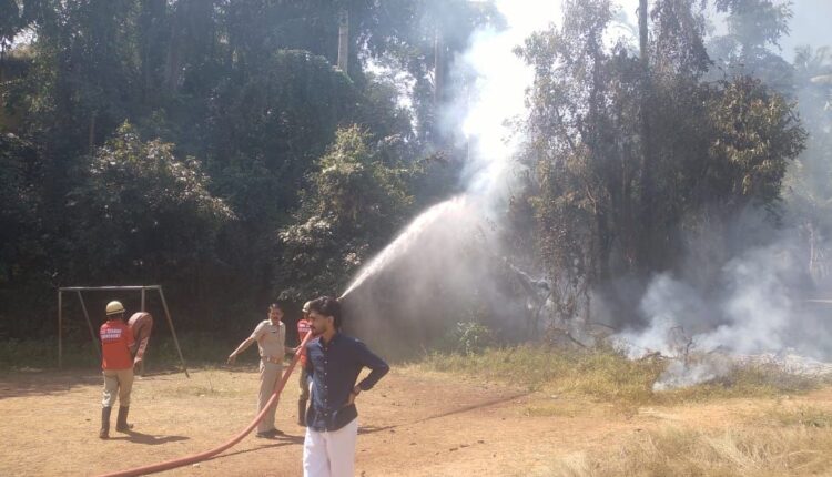 ചിത്രവിവരണം: മാഹി ഫയർഫോഴ്സ് സേനാംഗങ്ങൾ കോളജ് കാമ്പസിലെ തിയണയ്ക്കുന്നു