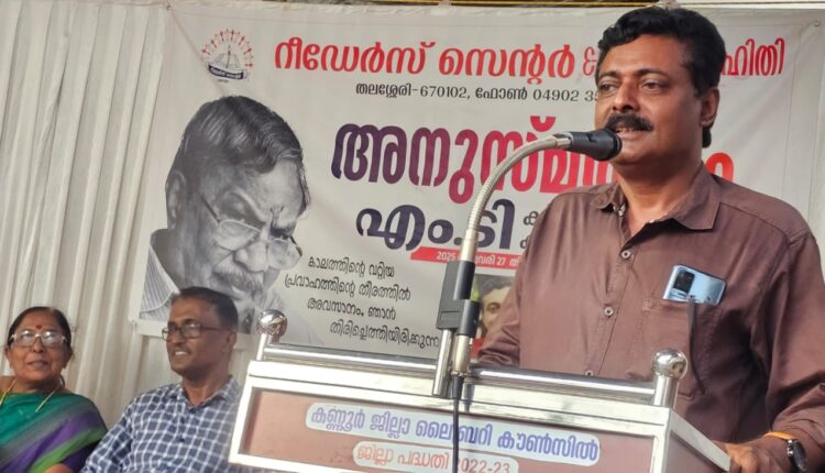 വയലളം: മലയാളത്തിൻ്റെ മഹാകാഥികൻ എം.ടി.വാസുദേവൻ നായർ കാലങ്ങളിലൂടെ സഞ്ചരിച്ച എഴുത്തുകാരനായിരുന്നെന്നു പ്രമുഖ നവ സാഹിത്യ നിരൂപകൻ കെ.വി.സജയ് പറഞ്ഞു. തലശ്ശേരി വയലളം റീഡേർഡ് സെൻ്റർ ആൻ്റ് വനിത വേദി സംഘടിപ്പിച്ച എം.ടി. അനുസ്മരണ പരിപാടി ഉദ്ഘാടനം ചെയ്ത് മുഖ്യപ്രഭാഷണം നടത്തുകയായിരുന്നു അദ്ദേഹം.