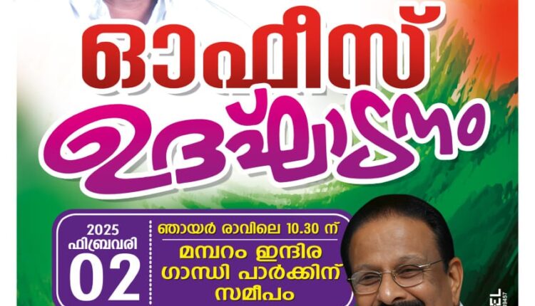 മമ്പറം: പൊന്നമ്പത്ത് ചന്ദ്രൻ സ്മാരക ചാരിറ്റബിൾ ട്രസ്റ്റ് ഓഫീസ് ഉദ്ഘാടനം ഞായറാഴ് നടക്കും. രാവിലെ 10.30 ന് മമ്പറം ഇന്ദിരഗാന്ധി പാർക്കിന് സമീപമാണ് ഉദ്ഘാടനം. കെ.പി.സി. സി പ്രസിഡണ്ട് കെ. സുധാകരൻ എം.പി ഉദ്ഘാടനം നിർവ്വഹിക്കും. ട്രസ്റ്റ് ഭാരവാഹികൾ ഉൾപ്പെടെ കോൺഗസ്സിൻ്റെ പ്രമുഖ നേതാക്കൾ ചടങ്ങിൽ പങ്കെടുക്കും
