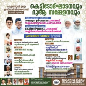 ഫെബ്രുവരി 6 ന് പാണക്കാട് സയ്യിദ് സാദിഖലി ശിഹാബ് തങ്ങൾ കെട്ടിടോദ്ഘാടനം നിർവഹിക്കും. ഫെബ്രുവരി2 ന് മുശ്താഖ് റഹ്മാൻ ഹുദവി