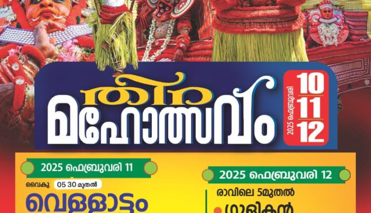 പാനൂർ: അണിയാരം മൂത്തേടത്ത് ദേവസ്ഥാനം തിറ മഹോത്സവം ഫിബ്രവരി 11, 12 തിയ്യതികളിൽ നടക്കുന്നതാണ്. 11 ന് താലപ്പൊലി ഘോഷയാത്ര, വെള്ളാട്ടങ്ങൾ, കലശം വരവ് എന്നിവയും 12 ന് ഗുളികൻ, നാഗഭഗവതി, കുട്ടിച്ചാത്തൻ, ഘണ്ടാകർണ്ണൻ, വസൂരിമാല, വിഷ്ണു മൂർത്തി തെയ്യം തിറകളും പ്രസാദ ഊട്ടും ഉണ്ടാകും.
