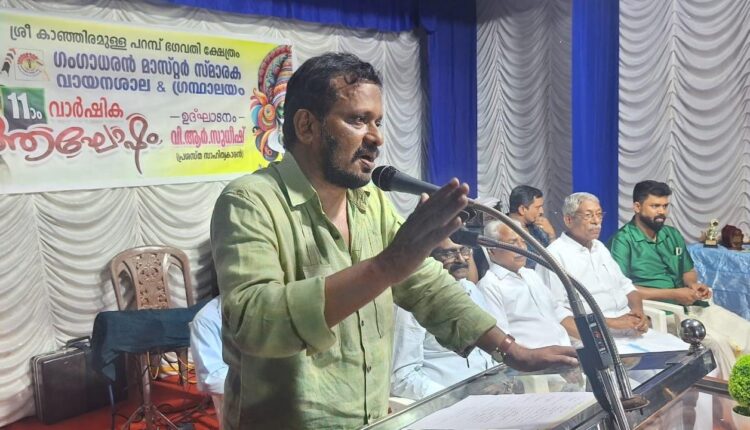 ന്യൂ മാഹി: പെരിങ്ങാടി ശ്രീ കാഞ്ഞിരമുള്ള പറമ്പ് ഭഗവതി ക്ഷേത്രം ഗംഗാധരൻ മാസ്റ്റർ സ്മാരക വായനശാല ഗ്രന്ഥാലയത്തിന്റെ പതിനൊന്നാം വാർഷിക ആഘോഷം പ്രശസ്ത ചെറുകഥാകൃത്ത് വി. ആർ. സുധീഷ് ഉദ്ഘാടനം ചെയ്തു.