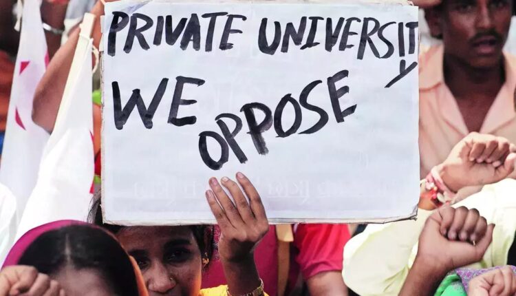 ഉന്നത വിദ്യാഭ്യാസരംഗത്ത് നിലനിൽക്കുന്ന പ്രതിസന്ധിക്ക് പരിഹാരമാണ് സ്വകാര്യ സർവ്വകലാശാലകൾ എന്നാണ് സർക്കാർ ഭാഷ്യം. എന്നാൽ വാസ്തവം ഇതല്ല. ഉന്നതപഠനത്തിനായി എത്തുന്ന വിദ്യാർത്ഥികൾക്ക് ആവശ്യമായ കോഴ്സുകൾ ഒരുക്കുന്നതിലും, പഠന ഉള്ളടക്കം നവീകരിക്കുന്നതിലും, അധ്യാപകരെ ഒരുക്കുന്നതിലുമുള്ള സർക്കാരിൻ്റെ വിമുഖതയാണ് ഉന്നത വിദ്യാഭ്യാസ പ്രതിസന്ധിയുടെ പ്രധാന കാരണം. പ്രധാന പ്രശ്നം പരിഹരിക്കുന്നതിനു പകരം ഉന്നത വിദ്യാഭ്യാസരംഗത്തു നിന്ന് കേന്ദ്ര-സംസ്ഥാന സർക്കാരുകൾ പിൻവാങ്ങുകയും; പകരം സ്വകാര്യ മേഖലയെ കയറൂരി വിട്ട് പൊതുവിദ്യാഭ്യാസത്തിൻ്റെ വാണിജ്യവൽക്കരണത്തിന് ആക്കം കൂട്ടുകയുമാണ് സർക്കാർ.