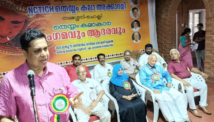 തെയ്യം കലാ അക്കാദമിയുടെ നേതൃത്വത്തിൽ മാഹി കലാഗ്രാമം ഓഡിറ്റോറിയത്തിൽ സംഘടിപ്പിച്ച തെയ്യം കലാകാരന്മാരുടെ സംഗമം ശ്രദ്ധേയമായി. കലാകാരന്മാർക്കുള്ള ആദരവ് സമ്മേളനം നിയമസഭാ സ്പീക്കർ അഡ്വ എ.എൻ ഷംസീർ ഉദ്ഘാടനം ചെയ്തു. വിദേശികൾ ഉൾപ്പെടെ സ്നേഹിക്കുന്ന തെയ്യം എന്ന അനുഷ്ഠാനകലയെ സംരക്ഷിക്കാനും വരും തലമുറയെ പഠിപ്പിക്കാനും പരിപോഷിപ്പിക്കാനും സാധിക്കേണ്ടതുണ്ടെന്ന് സ്പീക്കർ പറഞ്ഞു. തെയ്യം കലാകാരന്മാരെ സ്പീക്കർ ആദരിച്ചു. ന്യൂ മാഹി പഞ്ചായത്ത് പ്രസിഡൻ്റ് എം.കെ സെയ്ത്തു അധ്യക്ഷനായി. തെയ്യം കലാകാരൻമാർ നേരിടുന്ന പ്രശ്നങ്ങൾ ചർച്ച ചെയ്യാനും നിർദ്ദേശങ്ങൾ സർക്കാരിന്റെ ശ്രദ്ധയിലെത്തിച്ച് പരിഹാര മാർഗങ്ങൾ കണ്ടെത്താനുമാണ് സംഗമം നടത്തിയത്. കോരപ്പുഴ മുതൽ ചന്ദ്രഗിരിപ്പുഴവരെയുള്ള കാവുകളുമായി ബന്ധപ്പെട്ടു കഴിയുന്ന 300 ൽപരം തെയ്യം കലാകാരന്മാർ സംഗമത്തിൽ പങ്കെടുത്തു. കേരള ഫോക് ലോർ അക്കാദമി മുൻ സെക്രട്ടറി കീച്ചേരി രാഘവൻ സംഗമം ഉദ്ഘാടനം ചെയ്തു.