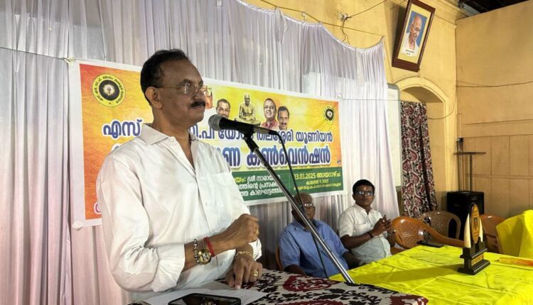 എസ്. എൻ. ഡി. പി. യോഗം തലശ്ശേരി യൂണിയന്റെ ആഭിമുഖ്യത്തിൽ തലശ്ശേരി ബി.ഇ.എം.പി ഹയർ സെക്കൻഡറി സ്കൂളിൽ ശാഖാ ഭാരവാഹികളെയും ‘ യൂണിയൻ പോഷക സംഘടനാ ഭാരവാഹികളെയും ശ്രീ നാരായണീയരെയും പങ്കെടുപ്പിച്ചു കൊണ്ട് നടന്ന ശ്രീ നാരായണ കൺവെൻഷൻ ഉദ്ഘാടനം ചെയ്ത് സംസാരിക്കുകയായിരുന്നു അദ്ദേഹം ” ശ്രീ നാരായണ ദർശനങ്ങളുടെ പ്രസക്തി ഇന്നത്തെ കാലത്ത്” എന്ന വിഷയത്തിൽ കതിരൂർ ശാഖാ സിക്രട്ടറി ശ്രീ. രജീഷ് മുഖ്യ പ്രഭാഷണം നടത്തി “ഗുരുസാഗര പുരസ്കാരം”-2024-അവാർഡിനർഹനായ അരയാക്കണ്ടി സന്തോഷിനെ യോഗത്തിൽ അഭിനന്ദിച്ചു. കതിരൂർ ശാഖാ പ്രസിഡൻ്റ് രവീന്ദ്രൻ മുരിക്കോളി യൂണിയന്റെ സ്നേഹാദരവ് ഫലകവും വിവിധ ശാഖാ ഭാരവാഹികൾ പൊന്നാടയും അണിയിച്ചു..