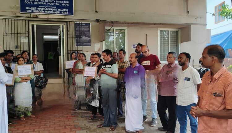 മാഹി ഗവ:ഹോസ്പിറ്റൽ എംപ്ലേയിസ് അസോസിയേഷൻ ജനറൽ സെക്രട്ടറി കെ.എം പവിത്രൻ്റെ അദ്ധ്യക്ഷതയിൽ CSO ചെയർമാൻ കെ.ഹരീന്ദ്രൻ ധർണ്ണ ഉൽഘാടനം ചെയ്തു, നേതാക്കളായ എൻ. മോഹനൻ, സീസൻ, പി.പി, കെ.വി കൃപേഷ്,ഇ. വി പ്രശോഭ് എന്നിവർ സംസാരിച്ചു. രാമകൃഷ്ണൻകരിയാട് സ്വാഗതം പറഞ്ഞു. സപ്ന, ബിന്ദു രോഷിത്ത്, ജീവൻ പ്രകാശ് കാണി,രമാദേവി എന്നിവർ നേതൃത്വം നൽകി