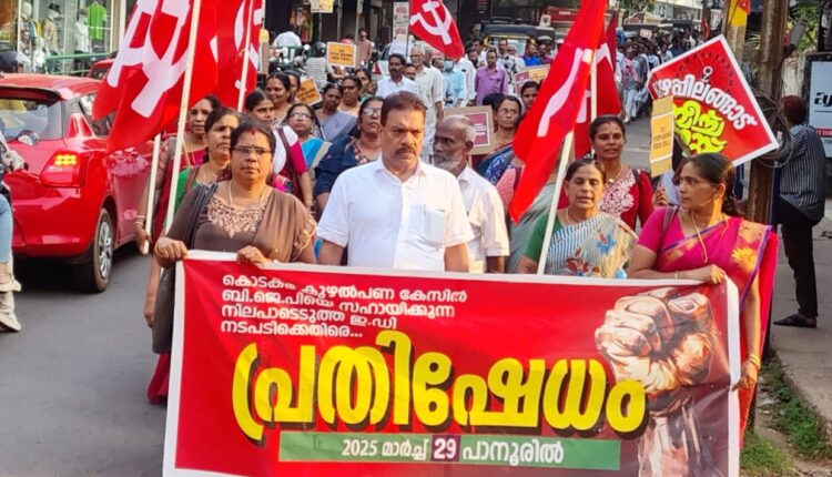 പാനൂർ : കൊടകര കുഴൽപണ കേസിൽ ബിജെപിയെ സഹായിക്കുന്ന ഇഡി നിലപാടിനെതിരെ സിപിഐ എം പാനൂർ ഏരിയ കമ്മിറ്റിയുടെ നേതൃത്വത്തിൽ പാനൂരിൽ പ്രതിഷേധ പ്രകടനവും, പൊതുയോഗവും നടന്നു.
