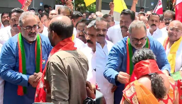 രാജീവ് ചന്ദ്രശേഖറിന്റെ സാന്നിധ്യത്തില് മുനമ്പം സമരത്തിന്റെ ഭാഗമായ 50 പേര് ബി ജെ പി യില് ചേര്ന്നു. പാര്ട്ടിയില് ചേര്ന്ന ഓരോരുത്തരെയും ഷാള് അണിയിച്ച് രാജീവ് ചന്ദ്രശേഖര് സ്വീകരിച്ചു. ബിഡിജെഎസ് അധ്യക്ഷന് തുഷാര് വെള്ളാപ്പള്ളി, ബിജെപി നേതാവ് പി. കെ. കൃഷ്ണദാസ്, മേജര് രവി, ഷോണ് ജോര്ജ് തുടങ്ങിയവര്ക്കൊപ്പമാണ് രാജീവ് ചന്ദ്രശേഖര് മുനമ്പം സമരപ്പന്തല് സന്ദര്ശിക്കാനെത്തിയത്.