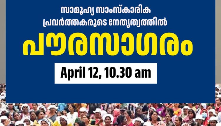 തിരുവനന്തപുരം : കേരളം ആശമാരോടൊപ്പം എന്ന സന്ദേശമുണർത്തിക്കൊണ്ട് സാമൂഹ്യ – സാംസ്കാരിക പ്രവർത്തകരുടെ നേതൃത്വത്തിൽ ഏപ്രിൽ 12 ന് ശനിയാഴ്ച രാവിലെ 10.30ന് പൗരസാഗരം പരിപാടി സംഘടിപ്പിക്കുന്നു.