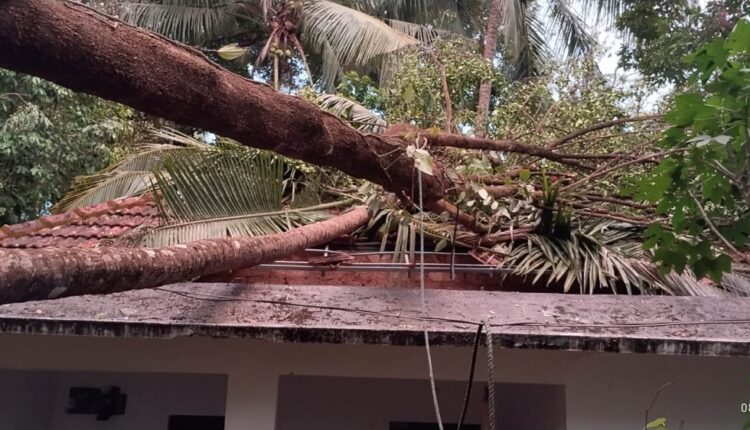 കിടാരൻകുന്ന് റെയിൽ റോഡിൽ രണ്ടിടത്ത് മരങ്ങൾ കടപുഴകി വീണു. പ്ലാവിൻ്റെ ഒരു ഭാഗം പൊട്ടി നിർത്തിയിട്ട കാറിന് മുകളിൽ വീണ് കാറിന് കേടുപാടുകൾ പറ്റി.