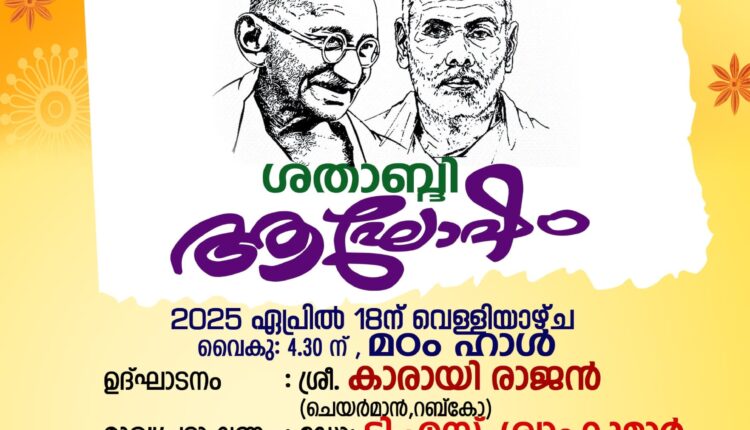 ന്യൂ മാഹി: ശ്രീനാരായണ ഗുരുവിൻ്റെയും മഹാത്മാഗാന്ധിയുടെയും സമാഗമത്തിൻ്റെ ശതാബ്ദി ആഘോഷം 18 ന് നടക്കും. ഏടന്നൂർ ശ്രീനാരായണ മഠം, വൈകുന്നേരം 4.30 ന് മഠം ഹാളിൽ നടത്തുന്ന ശതാബ്ദി ആഘോഷം റബ്കോ ചെയർമാൻ കാരായി രാജൻ ഉദ്ഘാടനം ചെയ്യും. എഴുത്തുകാരൻ ഡോ.ടി.എസ്. ശ്യാംകുമാർ മുഖ്യ ഭാഷണം നടത്തും. അർജുൻ പവിത്രൻ അധ്യക്ഷത വഹിക്കും.