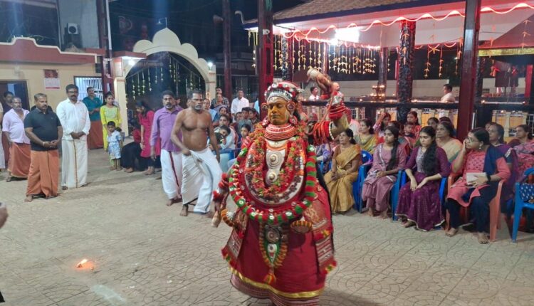 ന്യൂ മാഹി : പെരിങ്ങാടി ശ്രീകാഞ്ഞിരമുള്ള പറമ്പ് ഭഗവതി ക്ഷേത്രത്തിൽ കുട്ടിച്ചാത്തൻ നേർച്ച വെള്ളാട്ടം കെട്ടിയാടി. ക്ഷേത്രത്തിൽ ദീപാരാധനയ്ക് ശേഷം ആണ് നേർച്ച വെള്ളാട്ടം കെട്ടിയാടിയത്. നിരവധി ഭകതർ ചടങ്ങിൽ പങ്കെടുത്തു.