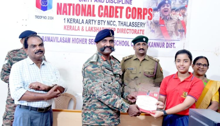 ചൊക്ലി : 1 കേരള ആർട്ടില്ലറി ബാറ്ററി എൻസിസി തലശ്ശേരിയുടെ കീഴിലുള്ള ചൊക്ലി രാമവിലാസം ഹയർ സെക്കൻഡറി സ്കൂളിലെ ‘A’ സർട്ടിഫിക്കറ്റ് പരീക്ഷ എഴുതിയ മുഴുവൻ എൻസിസി കേഡറ്റുകൾക്കും A ഗ്രേഡ് ലഭിച്ചു. വിജയികൾക്കുള്ള സർട്ടിഫിക്കറ്റ് വിതരണം 1 കേരള ആർട്ടില്ലറി ബാറ്ററി എൻസിസി തലശ്ശേരിയുടെ കമാൻഡിങ് ഓഫീസർ കേണൽ സഞ്ജയ് പിള്ളൈ നിർവഹിച്ചു. വിജയികൾക്കുള്ള വെയിറ്റെജ് സർട്ടിഫിക്കറ്റ് വിതരണം സ്കൂൾ മാനേജർ പ്രസീത് കുമാർ, ഹെഡ് മിസ്ട്രസ് സ്മിത എൻ. എന്നിവർ നിർവഹിച്ചു. എൻസിസി ഓഫീസർ ടി. പി. രവിദ് സ്വാഗതം പറഞ്ഞ ചടങ്ങിൽ ഹവിൽദാർ ജയരാമൻ ആശംസയും, എൻസിസി സീനിയർ കേഡറ്റ് സർജൻ്റ് മേജർ ശ്രീഭദ്ര എസ്. നന്ദിയും രേഖപ്പെടുത്തി. ഒരു എൻസിസി കേഡറ്റ് എപ്പോഴും തൻ്റെ ഗുണങ്ങൾ നില നിർത്തണമെന്നും രാജ്യത്തിൻ്റെ ഭാവി വാഗ്ദാനങ്ങളാകണമെന്നും ഉദ്ഘാടന ചടങ്ങിൽ കമാൻഡിംഗ് ഓഫീസർ കേണൽ സഞ്ജയ് പിള്ളൈ അഭിപ്രായപെട്ടു.