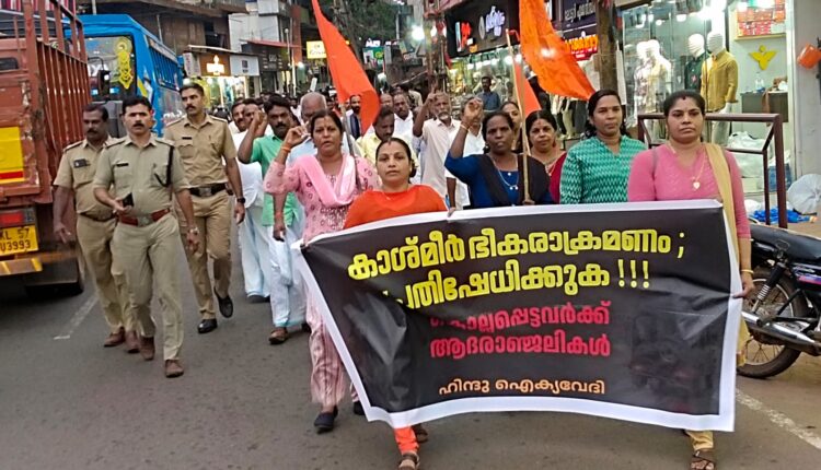 പാനൂർ: കാശ്മീരിലെ പഹൽ ഗാമിൽ ഭീകര – തീവ്രവാദികൾ നടത്തിയ കൂട്ടക്കൊലയിൽ പ്രതിഷേധിച്ച് ഹിന്ദു ഐക്യവേദി പാനൂർ താലൂക്ക് ഘടകത്തിൻ്റെ അഭിമുഖ്യത്തിൽ പാനൂരിൽ പ്രതിഷേധ പ്രകടനവും പൊതുയോഗവും നടന്നു.