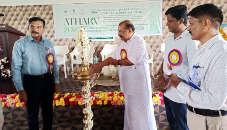 മാഹി രാജിവ് ഗാന്ധി ആയുർവേദ മെഡിക്കൽ കോളേജിന്റെ ആഭിമുഖ്യത്തിൽ, പുതുച്ചേരി ആയുഷ് വകുപ്പ്, നാഷണൽ മെഡിസിനൽ പ്ലാന്റ് ബോർഡ് എന്നിവയുടെ സഹകരണത്തോടെ “ക്ലിനിക്കൽ പ്രാക്ടീസ് ഇൻ ആയുർവേദ” എന്ന വിഷയത്തിൽ ദേശീയ സെമിനാർ -അഥർവ് 2025- സംഘടിപ്പിച്ചു.