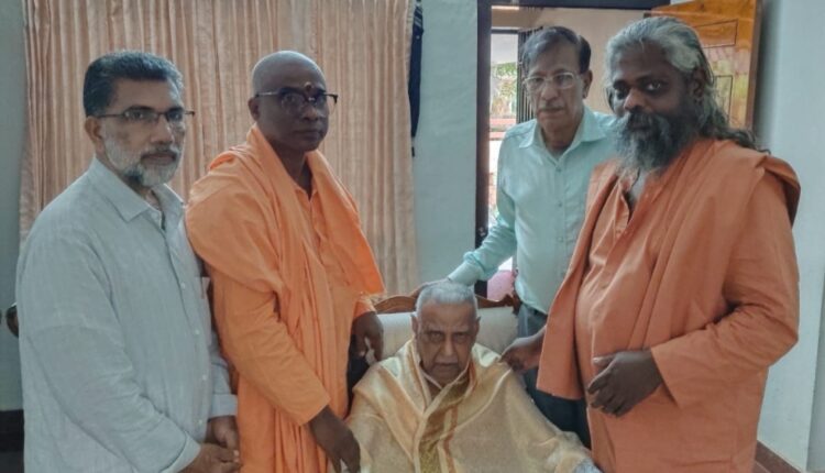 കവിയൂർ:ഗുരുധർമ്മപ്രചരണ സഭ കേന്ദ്ര സമിതി അംഗവും, നിരവധി പുസ്തകങ്ങളുടെ ഗ്രന്ഥകർത്താവും , തലശ്ശേരി മേഖലയിലെ ശ്രീനാരായണമഠങ്ങളുടെ നേതൃത്വനിരയിൽ പ്രവർത്തിക്കുന്ന ആദരണിയനും , പ്രമുഖ സഹകാരിയും ഇപ്പോൾവിശ്രമജീവിതം നയിക്കുന്ന ശ്രീമാൻ. വി.കെ.ഭാസ്ക്കരൻ മാസ്റ്ററെ സ്വവസതിയിൽ ശിവഗിരി മഠത്തിലെ സന്യാസി ശ്രേഷഠന്മാരായ ശ്രീമദ് ധർമ്മ വ്രതസ്വാമികൾ, ശ്രീമദ് അംബികാനന്ദ സ്വാമികൾ ശിവഗിരി മഠത്തിന്റെ ആദരവ് നൽകി – GDPS ജില്ലാ പ്രസിഡന്റ് സി.. കെ.സുനിൽകുമാർ. ഡൽഹി ശ്രീനാരായണ പ്രസ്ഥാനത്തിന്റെ അമരക്കാരൻ ശ്രീ.സി.ചന്ദ്രൻ ചൊക്ലി എന്നിവർ സംബന്ധിച്ചു