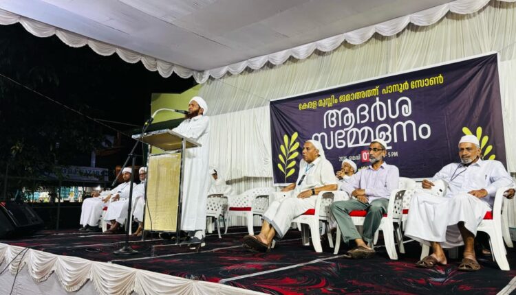 പാരമ്പര്യത്തിൽ അധിഷ്ഠിതമായ ഇസ്ലാമിൻ്റെ തനിമ നിലനിൽക്കുന്നതും സ്നേഹവും സാഹോദര്യവും നിലനിർത്തുന്നതും അഹ്ലുസ്സുന്നയിലൂടെ മാത്രമെന്ന് സി. മുഹമ്മദ് ഫൈസി . മനുഷ്യർക്കൊപ്പം കർമ സാമയികം എന്ന പ്രമേയത്തിൽ കേരള മുസ്ലിം ജമാഅത്ത് പാനൂർ സോൺ കമ്മിറ്റി സംഘടിപ്പിച്ച ആദർശ സമ്മേളനത്തിൻ്റെ ഉൽഘാടനം ചെയ്തു കൊണ്ട് സംസാരിക്കയായിരുന്നു അദ്ദേഹം. പുത്തൻ വാദികളും യുക്തിവാദികളും ഒക്കെ ചേർന്ന് സമൂഹത്തിൻ്റെ സമാധാനം നഷ്ടപ്പെടുത്തുകയാണെന്നും മുഹമ്മദ് ഫൈസി തുടർന്ന് പറഞ്ഞു. സമ്മേളനത്തിൽ സമസ്ത താലൂക്ക് സിക്രട്ടറി മുഹമ്മദ് സഖാഫി ചൊക്ലി പ്രാർഥന നടത്തി. സ്വാഗത സംഘം ചെയർമാൻ വി. വി. അബൂബക്കർ സഖാഫി അധ്യക്ഷത വഹിച്ചു. റാഷിദ് ബുഖാരി ഇരിങ്ങണ്ണൂർ ആമുഖ പ്രഭാഷണം നടത്തി. ഇബ്രാഹിം സഖാഫി പുഴക്കാട്ടിരി, അബ്ദുറശീദ് സഖാഫി കുറ്റ്യാടി, ഫിർദൗസ് സഖാഫി കടവത്തൂർ പ്രസംഗിച്ചു. സി.കെ.എം. അശ്റഫ് മൗലവി, ഹനീഫ് പാനൂർ,ടി.പി. അബൂബക്കർ ഹാജി, സയ്യിദ് മശ്ഹൂർ തങ്ങൾ, മുത്തലിബ് സഖാഫി പാറാട്, റഫീഖ് അണിയാരം, നവാസ് കൂരാറ, അലി മാക്കൂൽപ്പീടിക, അരേരത്ത് അബ്ദുല്ല ഹാജി, സി. കെ. അബ്ദു റഹീം മുസ്ലിയാർ, വി.വി. മുസ്തഫ ഹാജി, മുഹമ്മദ് സഖാഫി പൂക്കോം, ഇബ്രാഹിം സഅദി, മത്തത്ത് അബ്ദുല്ല മൗലവി, സജീർ വി. പി, ആദിൽ സഖാഫി, ഇസ്മായിൽ മാസ്റ്റർ, അൻസാർ കടവത്തൂർ, തുടങ്ങിയവർ സംബന്ധിച്ചു. സോൺ ജനറൽ സിക്രട്ടറി മമ്മു വി.കെ. സ്വാഗതവും എസ്. വൈ. എസ് സോൺ സിക്രട്ടറി മുനീർ മാസ്റ്റർ നന്ദിയും പറഞ്ഞു