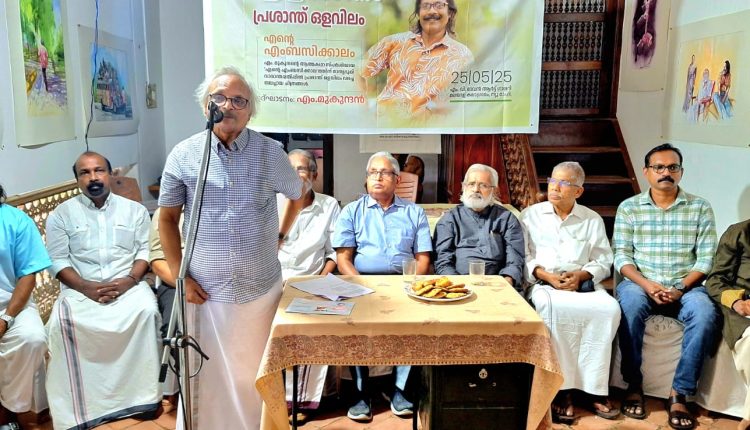 മയ്യഴി: എം.മുകുന്ദൻ്റെ ആത്മകഥാ സ്പർശിയായ എൻ്റെ എംബസിക്കാലത്തിന് മാതൃഭൂമി വാരാന്തപ്പതിപ്പിൽ പ്രശാന്ത് ഒളവിലം വരച്ച ജലച്ചായ ചിത്രങ്ങളുടെ പ്രദർശനം ന്യൂമാഹി മലയാള കലാഗ്രാമം എം.വി.ദേവൻ ആർട്ട് ഗാലറിയിൽ ഒരാഴ്ചത്തെ പ്രദർശനം എം.മുകുന്ദൻ ഉദ്ഘാടനം ചെയ്തു.