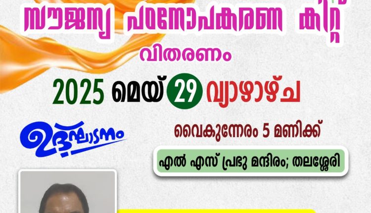തലശേരി : ഇന്ത്യൻ യൂത്ത് കോൺഗ്രസ്സ് തലശ്ശേരി നിയോജകമണ്ഡലം കമ്മിറ്റിയുടെ ആഭിമുഖ്യത്തിൽ സൗജന്യ പഠനോപകരണ വിതരണം 29 ന് വ്യഴാഴ്ച 5 മണിക്ക് നടക്കും. തലശ്ശേരി എൽ.എസ് പ്രഭു മന്ദിരത്തിൽ നടക്കുന്ന പഠനോപകരണ വിതരണ പരിപാടി മമ്പറം ദിവാകരൻ ഉദ്ഘാടനം ചെയ്യും. യൂത്ത് കോൺഗ്രസ്സ് ജില്ല വൈസ് പ്രസിഡണ്ട് റിൻസ് മാന്വൽ മുഖ്യഭാഷണം നടത്തും