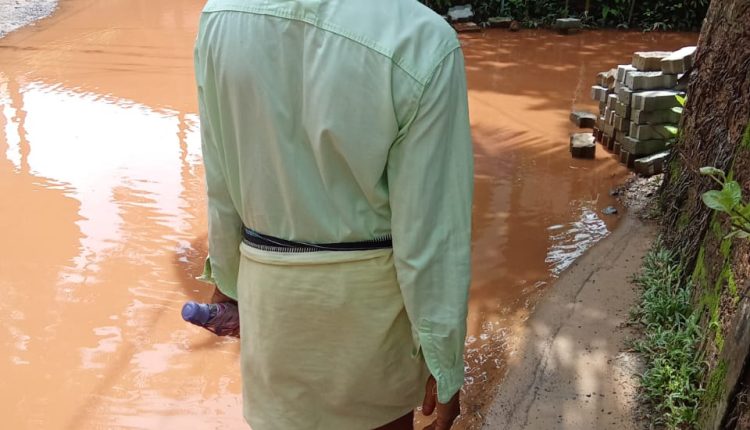 ചിത്രം : ശ്രീനാരായണമഠം മുതൽ കുടുംബരോഗ്യ കേന്ദ്രം വരെയുള്ള റോഡ് മഴവെള്ളവും ചെളിയും നിറഞ്ഞ കാൽനട പോലും ദുസ്സഹമായ രീതിയിൽ