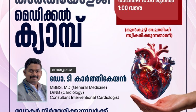 പാനൂർ : പാനൂർ കോ ഓപ്പറേറ്റീവ് ഹോസ്പിറ്റലും ഇന്ത്യാന ടി എം എച്ച് കാർഡിയാക് സെൻ്ററും സംയുക്തമായി പാനൂർ ബൈപ്പാസ് റോഡിലുള്ള പാനൂർ കോ ഓപ്പറേറ്റീവ് ഹോസ്പിറ്റലിൽ വച്ച് കാർഡിയോളജി മെഡിക്കൽ ക്യാമ്പ് സംഘടിപ്പിക്കുന്നു. സൗജന്യ കാർഡിയോളജി മെഡിക്കൽ ക്യാമ്പ് 29 ന് ഞായർ രാവിലെ 10 മണിക്ക് പാനൂർ പ്രസ് ക്ലബ് പ്രസിഡണ്ട് കെ കെ സജീവ് കുമാർ ഉദ്ഘാടനം ചെയ്യും.
