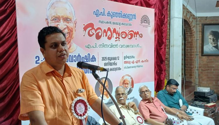 മലയാള കലാഗ്രാമം സ്ഥാപകൻ എ.പി.കുഞ്ഞിക്കണ്ണൻ്റെ രണ്ടാം വാർഷിക സ്മരണ ദിനത്തിൽ കലാഗ്രാമം ഓഡിറ്റോറിയത്തിൽ നടന്ന സമ്മേളനം ഉദ്ഘാടനം ചെയ്ത് സംസാരിക്കുകയായിരുന്നു അദ്ദേഹം.