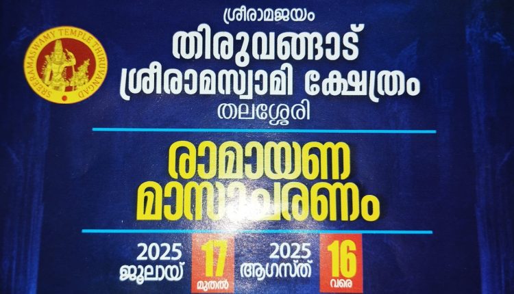 തിരുവങ്ങാട് ശ്രീരാമസ്വാമി ക്ഷേത്രത്തിൽ രാമായണ മാസാചരണം. 2025 ജൂലായ് 17 മുതൽ ആഗസ്റ്റ് 16വരെ .