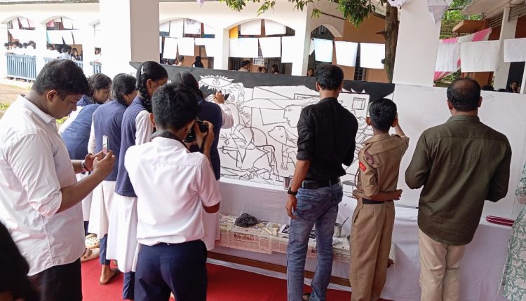 ചൊക്ലി :ഹിരോഷിമ ദിനത്തോടനുബന്ധിച്ച് ചൊക്ലി രാമവിലാസം ഹയർ സെക്കണ്ടറി സ്കൂൾ സാമൂഹ്യശാസ്ത്ര ക്ലബ്ബിൻ്റെ ആഭിമുഖ്യത്തിൽ വിദ്യാർത്ഥികളും പൂർവ്വ വിദ്യാർത്ഥികളും അധ്യാപകരും യൂണിറ്റി ക്യാൻവാസിൽ ചിത്രങ്ങൾ തീർത്തു.യുദ്ധവിരുദ്ധ സന്ദേശമുയർത്തിക്കൊണ്ട് പ്രശസ്ത ചിത്രകാരനായ പാബ്ലോ പിക്കാസോയുടെ ഗർണിക്കയെ ഇവർ പുന:സൃഷ്ടിച്ചത് ഏറെ ശ്രദ്ധ നേടി.ചടങ്ങിന്റെ ഉദ്ഘാടനം ചിത്രകല അധ്യാപകൻ ടി പി ശ്രീധരൻ നിർവഹിച്ചു.പൂർവ്വ വിദ്യാർത്ഥികളായ അഷിക ദിലീപ്, കെ കെ ബീന എന്നിവർ ചിത്രങ്ങൾ ഒരുക്കാൻ വിശിഷ്ടാതിഥികളായി വിദ്യാലയത്തിലെത്തി.പ്രഥമാധ്യാപിക എൻ സ്മിത അധ്യക്ഷത വഹിച്ചു.സാമൂഹ്യശാസ്ത്ര ക്ലബ്ബ് കൺവീനർ എസ് അഭിലാഷ് സ്വാഗതം പറഞ്ഞു.വി നിഖിൽ, കിരൺ രമേശ് ,ആർ അജേഷ് എന്നിവരും യുദ്ധവിരുദ്ധ ചിത്രങ്ങൾ തീർത്തു.മാനേജർ കെ പ്രസീത് കുമാർ, ഉപപ്രഥമാധ്യാപകൻ കെ ഉദയകുമാർ ,സ്റ്റാഫ് സെക്രട്ടറി ടി പി ഗിരീഷ് കുമാർ , സി .അസിത എന്നിവർ ആശംസകളർപ്പിച്ച് സംസാരിച്ചു.സി കെ അനീഷ് , ഇ ഗ്രീസി ,കെ നൈജി ,എം ഷീന, ദീപ മരിയ ഉതുപ്പ്, ഇ.ആശ തുടങ്ങിയവർ ചടങ്ങിന് നേതൃത്വം നൽകി.