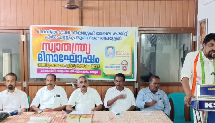 ശാസ്ത്രവേദി തലശ്ശേരി മേഖല കമ്മിറ്റി എൽ.എസ്. പ്രഭു മന്ദിരത്തിൽ സ്വാത ന്ത്ര്യദിനാഘോഷവും ശാസ്ത്രഭാരതം ക്വിസ് മത്സരം 2025 ഉം സംഘടിപ്പിച്ചു.