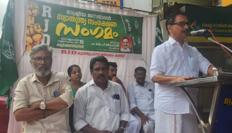 രാഷ്ട്രീയ ജനതാദൾ കൂത്തുപറമ്പ് മണ്ഡലം കമ്മിറ്റിയുടെ ആഭിമുഖ്യത്തിൽ സ്വാതന്ത്ര്യ സംരക്ഷണ സംഗമം സംഘടിപ്പിച്ചു. ദേശീയ നിർവ്വാഹക സമിതിയംഗം കെ.പി.മോഹനൻ എംഎൽഎ ഉദ്ഘാടനം ചെയ്തു. മണ്ഡലം പ്രസിഡൻ്റ് പി.ദിനേശൻ അധ്യക്ഷത വഹിച്ചു. ജില്ലാ ജനറൽ സെക്രട്ടറി രവീന്ദ്രൻ കുന്നോത്ത് പ്രതിജ്ഞ ചൊല്ലി കൊടുത്തു. പ്രവാസി ജനത ജില്ലാ പ്രസിഡൻറ് മുഹമ്മദ് റാഫി അഴീക്കോട് മുഖ്യ പ്രഭാഷണം നടത്തി. മഹിളാ ജനതാദൾ പ്രസിഡൻറ് ഒ.പി. ഷീജ, യുവജനതാദൾ മണ്ഡലം പ്രസിഡൻ്റ് എം.കെ.രഞ്ജിത്ത്, സി.കെ.ബി.തിലകൻ, വി.പി.മോഹനൻ എന്നിവർ സംസാരിച്ചു.