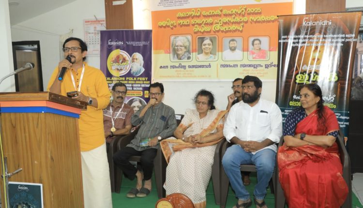 കലാനിധി സെന്റര് ഫോര് ഇന്ത്യന് ആര്ട്സ് & കള്ച്ചറല് ഹെറിറ്റേജ് ട്രസ്റ്റിന്റെ സില്വര് ജൂബിലി ആഘോഷത്തിന്റെ ഭാഗമായി കലാനിധി ഫോക്ക് ഫെസ്റ്റ് 2025 രവീന്ദ്രനാഥ ടാഗോര് പുരസ്കാര സമര്പ്പണവും മീഡിയ അവാര്ഡും തിരുവനന്തപുരം പദ്മ കഫെ, മന്നം ഓഡിറ്റോറിയത്തില് 2025 ഓഗസ്റ്റ് 31, ഞായറാഴ്ച ഉച്ചയ്ക്ക് ഒരു മണിക്ക് കലാനിധി ട്രസ്റ്റ് ചെയര്പേഴ്സണ് ആന്ഡ് മാനേജിങ് ട്രസ്റ്റി ഗീതാ രാജേന്ദ്രന്റെ അധ്യക്ഷതയില് കവിയും ഗ്രന്ഥകാരനും ചലച്ചിത്രപ്രവര്ത്തകനും,